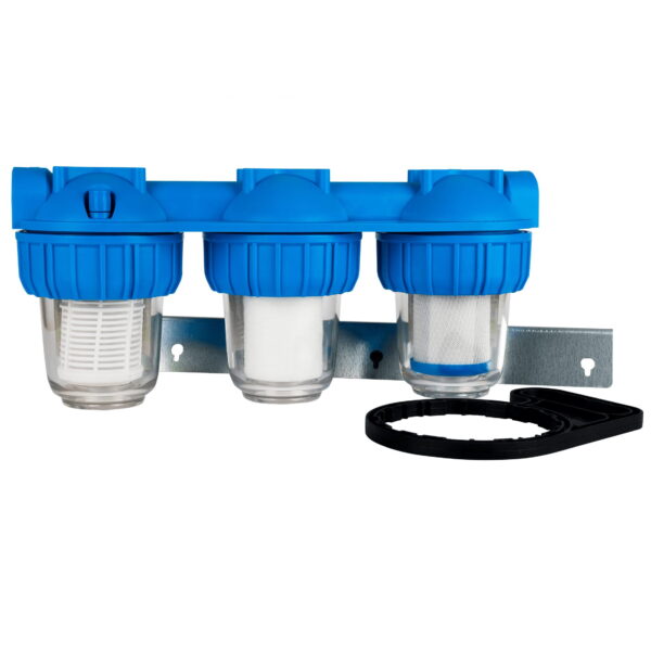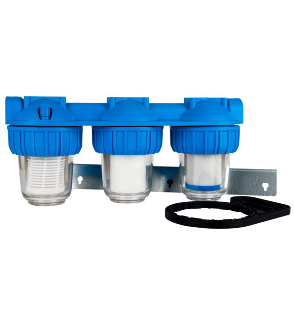 Sestavljeni kompleti so namenjeni montaži na vhodu vode v objekt. Mehanski trojček je sestavljen iz filtrirnega ohišja, v katerem je vgrajen filtrirni element, ki skrbi za mehansko filtracijo vode. Filtrirni vložek mehanski mrežica iz vode odstrani večje mehanske delce. Sledi mu filtrirni vložek polipropilen, ki odstranjuje fine delce kot so mulj, pesek in obarvanost vode. Kot zadnji vložek je filtrirni vložek z aktivnim ogljem, ki iz vode odstranjuje klor, vonj ter slab okus.